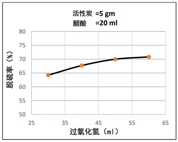 圖2:所用樣品中脫硫百分比與H2O2含量之間的關(guān)系。