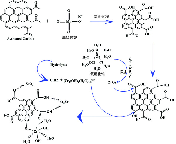 圖1:載鋯活性炭合成過程中可能發(fā)生的改性過程示意圖。