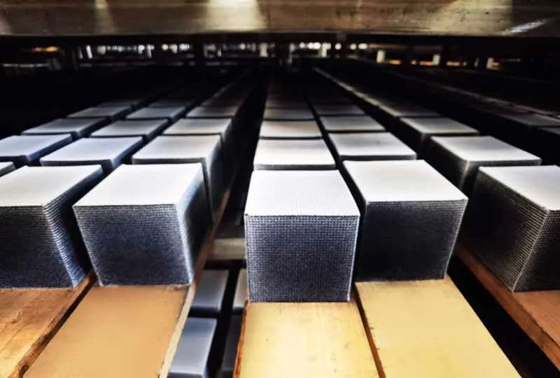 韓研股份作為蜂窩活性炭行業(yè)的領頭羊,專注研發(fā)與創(chuàng)新,目前已量產比表面積高達900㎡/g的蜂窩活性炭產品。