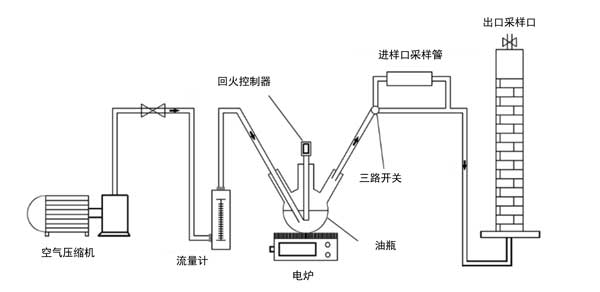 如圖1所示,在裝滿5g顆;钚蕴康牟蓸庸艿娜肟诤统隹谔幨占3分鐘的模擬烹飪油煙樣品。采樣重復(fù)3次。取出樣品管中的顆;钚蕴,轉(zhuǎn)移到燒瓶中,并使用超聲儀用15mL四氯化碳洗滌5分鐘。收集清潔液并將其轉(zhuǎn)移到另一個(gè)燒瓶中(標(biāo)記為A)。用10mL四氯化碳再次洗滌顆;钚蕴,并收集清潔液并將其轉(zhuǎn)移到燒瓶A中。