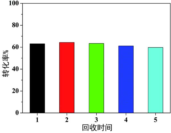 進(jìn)行回收試驗以研究活性炭催化劑的異質(zhì)性和穩(wěn)定性。第一次催化反應(yīng)完成后,過濾回收活性炭載鉑催化劑(硫酸活化),用蒸餾水洗滌,55℃真空干燥12小時,重新用于第二次催化反應(yīng)。在另外三個運行中實施了相同的操作。同時,在第一次運行后,通過檢測回收的活性炭催化劑和濾液中的鉑量。圖3展示了回收試驗的結(jié)果。觀察到甲基環(huán)己烷的轉(zhuǎn)化率在59.8-64.4%范圍內(nèi)有小幅波動,表明活性炭催化劑的活性在重復(fù)使用4次后幾乎沒有下降,表明活性炭催化劑具有良好的穩(wěn)定性。第一次運行后,反應(yīng)中的鉑浸出量為0.33ppm。當(dāng)鉑催化劑從反應(yīng)體系中過濾出來時,在濾液中很少觀察到催化反應(yīng),這證明了活性炭載體上的鉑作為非均相活性位點。