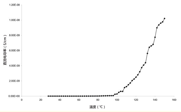 圖1:活性炭樣品1的直流電導(dǎo)率隨溫度的變化。
