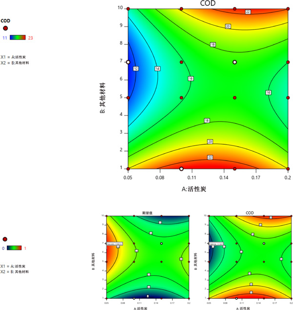 圖2:活性炭低濃度廢水處理過程的合適疊加轉換等值線圖。