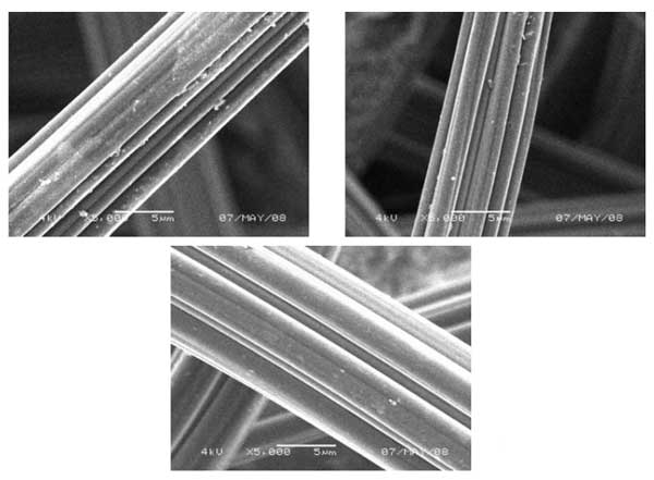 圖1:活性炭的SEM照片(a)活性炭-0(b)活性炭改性纖維和(c)活性炭-HNO3。
