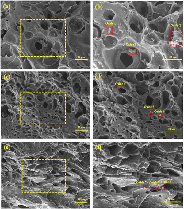 圖1顯示了活性炭載錳催化劑的表面微觀結(jié)構(gòu)。在圖1a和b中,活性炭載錳5催化劑表面孔隙分布不均勻,周圍有少量顆粒。當(dāng)Mn負(fù)載量為5%時(shí),可以在催化劑指示的塊狀附著物中檢測(cè)到少量Mn。這表明催化劑成功負(fù)載Mn,但是,它的含量很低。圖1(c)和(d)中,活性炭載錳7催化劑表面光滑,孔結(jié)構(gòu)發(fā)達(dá),孔道明顯增加,表面顆粒分布均勻。這有助于催化劑吸附氣體;钚蕴枯d錳7催化劑成功負(fù)載了中等含量的Mn元素,可以很好地改性活性炭。這些發(fā)現(xiàn)與圖3中脫硝曲線的結(jié)果一致。在圖1e和f中,活性炭載錳9催化劑表面粗糙,大小不一的孔隙分布不均勻,顆粒在表面局部堆積。這些因素堵塞了氣孔,抑制了脫硝。當(dāng)Mn負(fù)載量為9%時(shí),在催化劑表面檢測(cè)到大量附著物。高M(jìn)n含量表明Mn的過(guò)量負(fù)載可能導(dǎo)致催化劑表面21上的孔隙積累和堵塞(圖1e和f)。這可能是NO轉(zhuǎn)化率因負(fù)載過(guò)大而降低的原因之一。