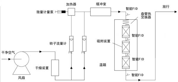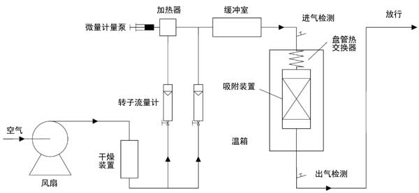 圖1:動(dòng)態(tài)吸附實(shí)驗(yàn)裝置。