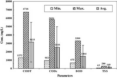 亞麻廢水的理化特性如圖1所示。結果表明,化學需氧量(COD)為127〜6718 mgO 2 / l,平均值為3133 mg / L。此外,BOD指示的平均可生物降解物質為1464mg / L。平均BOD / COD比值為0.467,表明生物降解難度較大。此外,總懸浮物達到149 毫克/升。
