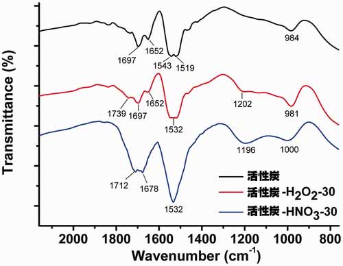 圖1.初始和氧化活性炭的典型ATR光譜。