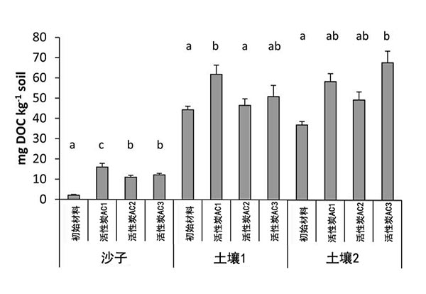 圖1:用不同的活性炭處理溶解沙土樣品中的有機(jī)碳。