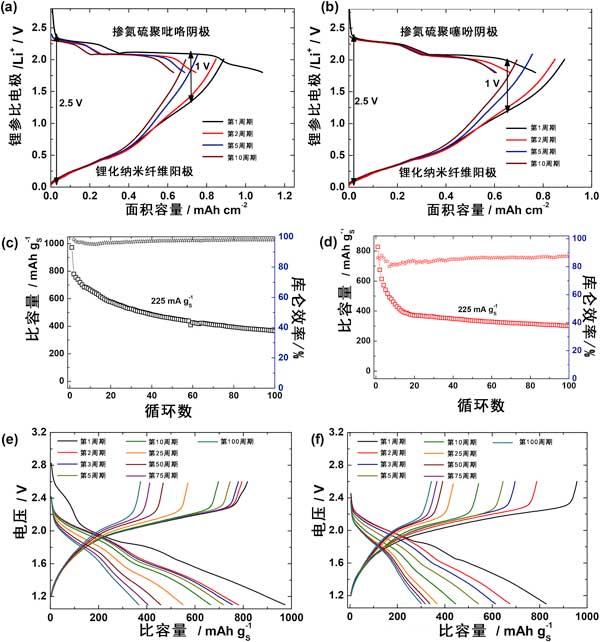 圖5:活性炭載硅復(fù)合纖維陽極與氮硫摻雜活性炭陰極在面積容量和全電池截止電壓估算方面的平衡。