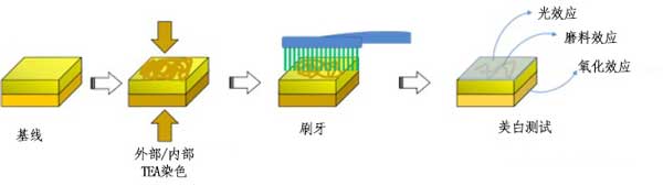 圖1:作為其美白技術(shù)的函數(shù),樣品的染色方案和所測試的不同美白牙膏的可能的美白效果。