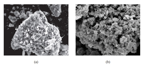 圖3:催化劑的SEM表征(a)商業(yè)催化劑,(b)Cu/ZnO/活性炭催化劑。