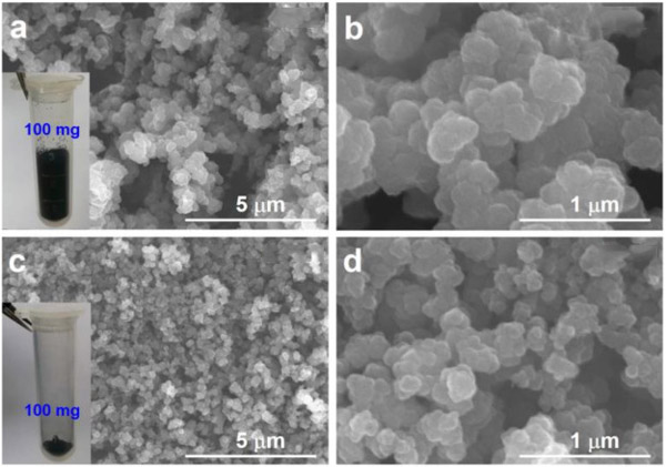 圖2中的插圖是兩種活性炭的數碼照片。當將相同量的兩種活性炭(100 mg)放入相同體積的離心管(5 mL)中時,活性炭-1粉末占據的體積更大,這表明他的密度較低。通過掃描電子顯微鏡研究了他們的形態(tài)。如圖2所示可以看出,與原始材料相比,兩種活性炭的外觀變化不大。但是,它們的粒徑不同。顯然,活性炭-1的顆粒大于活性炭-2的顆粒。這些顆粒聚集在一起并形成多孔形態(tài);钚蕴-1具有更大的孔徑,表明較疏松的多孔結構。