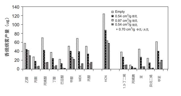 圖3:活性炭孔徑和分布對煙氣產(chǎn)量的影響。