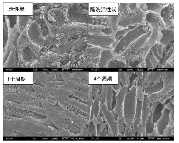 通過酸洗的活性炭和活性炭在顯示圖2中,SEM成像還透露,酸洗除去的雜質(zhì),從而產(chǎn)生的孔結(jié)構(gòu)具有一個看似光滑的表面。與原始活性炭相比,酸洗活性炭的比表面積和總孔體積略大。這可能是在酸洗過程中去除了其他化學(xué)物質(zhì)(例如氧氣)的影響。然而,酸洗似乎對活性炭的孔徑幾乎沒有影響。原始活性炭和新鮮活性炭的平均孔徑表明,絕大多數(shù)孔都屬于微孔范圍。